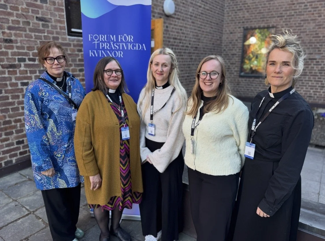 Från vänster Ninna Birkoff, Stockholms stift, Catharina Helmersson, Linköpings stift. Sofie Halvarsson, Stockholms stift, Emma Jansson, Lunds stift, Johanna Lundin, Västerås stift och Jaqueline Daneberg, Göteboergs stift.