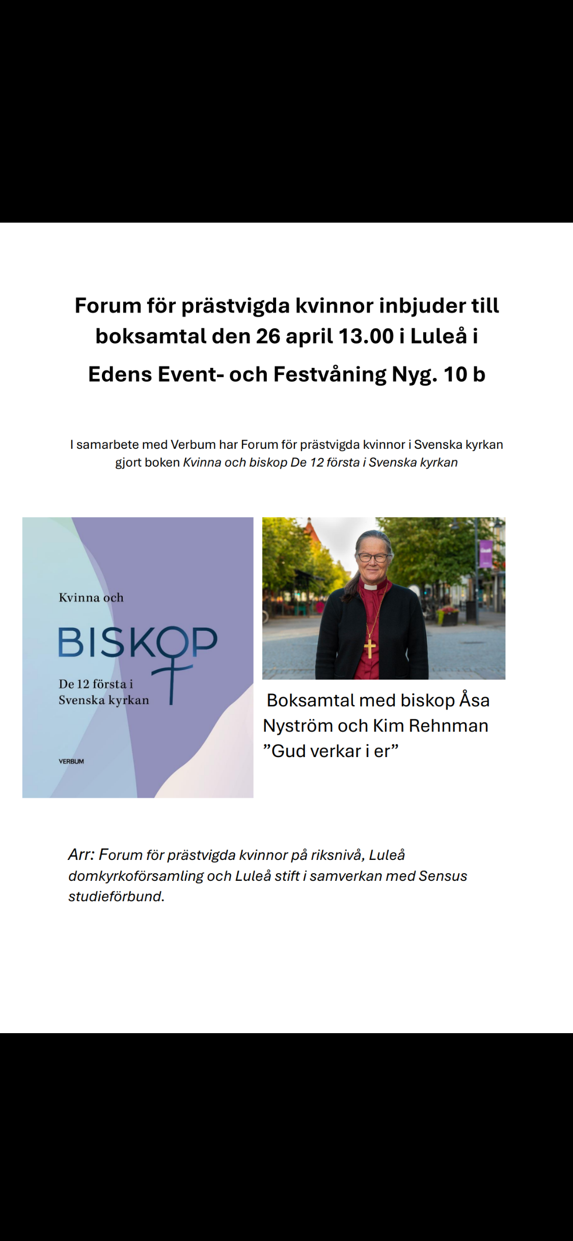 26 april Luleå, Edens Event- och Festvåning, dessförinnan högmässa kl. 11 i Luleå domkyrka
